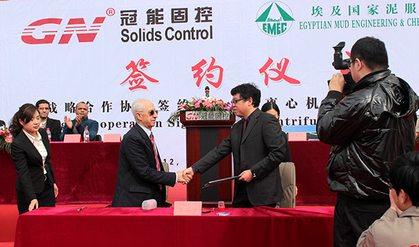 2015年3月12日,冠能固控與埃及國(guó)家泥服公司在中國(guó)北京冠能公司總部簽署戰(zhàn)略合作協(xié)議,為此冠能固控舉辦了盛大了簽約儀式,儀式也包括了一大批離心機(jī)的成功交付。